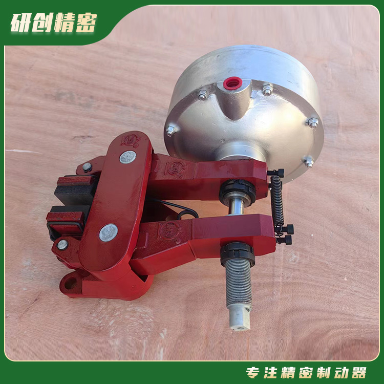 氣動盤式安全制動器產(chǎn)品性能安全可靠,制動靈敏,動作頻率高,使用壽命長。主要用于機(jī)器設(shè)備的停止安全,氣動制動器在沒有通氣的情況下為閉合狀態(tài),當(dāng)通氣時(shí)活塞桿會在氣壓的作用下迅速的向氣缸內(nèi)收縮,左右倆測制動臂會在復(fù)位彈簧的作用下帶動制動瓦塊打開設(shè)備正常工作,簡單說就是斷氣制動,通氣打開,因此氣動盤式制動器適用于一些對安全防護(hù)有要求的一些場合